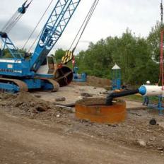 Dazu mussten 5 Tandemschächte im 26 m tiefen Deponiekörper hergestellt werden, aus dessen Schutz heraus die PE 100, Da 280 mm, SDR 7,4 Drainageleitungen im dynamischen Berstliningverfahren saniert werden konnten.