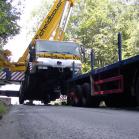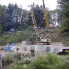 Die Anlieferung der nahezu 20 to schweren Betonfertigteile des Senkschachtes waren in dem bergigen Gelände eine logistische Herausforderung.