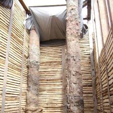 Eine besondere Sorgfalt war wegen der Vielzahl an Leitungen erforderlich, welche die Baugrube querten. Deren Lage musste sowohl bei der Ausführung der Träger- bzw. Pfahlbohrungen, als auch beim Einbau der Holzausfachung berücksichtigt werden.
