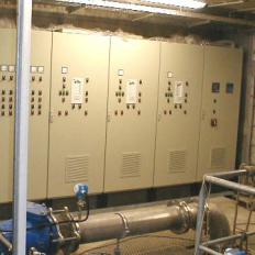 Die im unterirdisch angelegten Brunnenvorschacht installierte Schaltanlage steuert und regelt die Wasserförderung und stellt die Verbindung zum Leitsystem her, welches die Gesamtanlage nach hydraulischen Gegebenheiten regelt. Der Betrieb des gesamten Systems funktioniert vollautomatisch. Die Brunnen können aber auch, je nach Erfordernis, einzeln vom Leitsystem oder direkt von der Schaltanlage des jeweiligen Horizontalfilterbrunnens gesteuert werden.