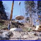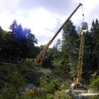 Die Anlieferung der nahezu 20 to schweren Betonfertigteile des Senkschachtes waren in dem bergigen Gelände eine logistische Herausforderung.
