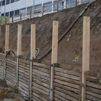 Zur Porenentwässerung des Hangbereiches mussten 20 Stück Vakuumlanzen mit 6 m Länge gesetzt werden. Diese Lanzen, ein Brunnen als Sammelschacht und ein angelegter Drainagegraben im Bereich des Verbaufußes führten zur erforderlichen Stabilisierung des Bodens.