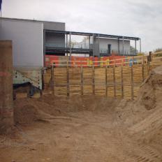 Eine 8,5 m tiefe Baugrube hatte die BHG Brechtel GmbH in Heidelberg herzustellen. Der Verbau war mit 4-Litzen-Ankern temporär rückverhängt worden. In einem tieferen Bereich der Baugrube ( T = 9,75 m) waren zwei Lagen Anker erforderlich.